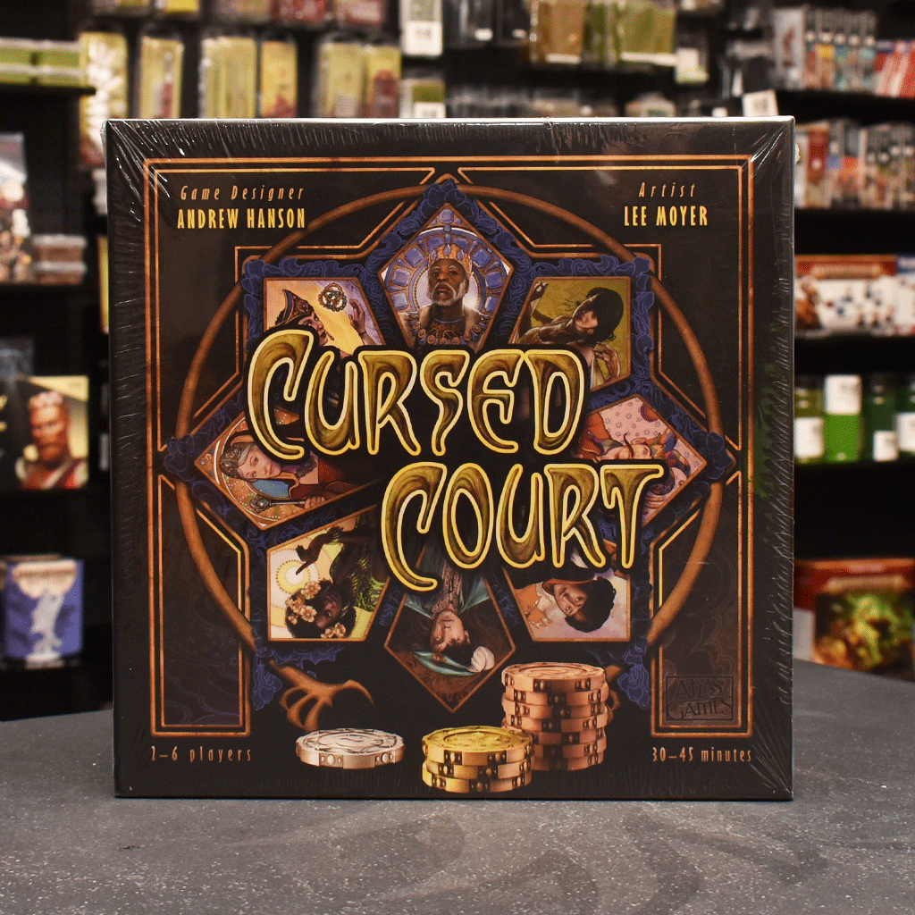 Cursed Court is a game of bidding and bluffing. Each player can access a different set of limited information (via shared cards and public cards) about who will wield influence in court each year.