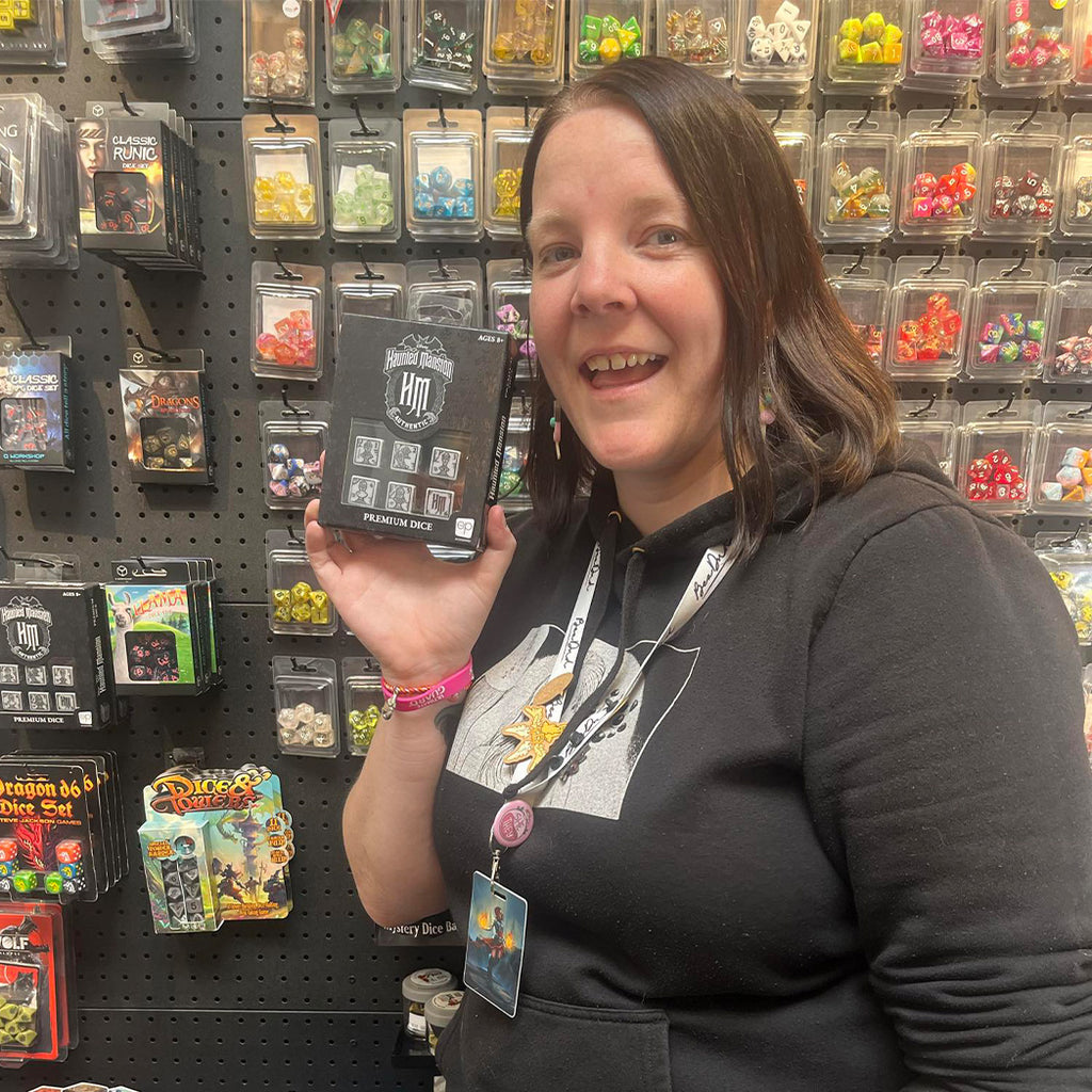 Take a handful of the “999 happy haunts” to your next game night with the Disney Haunted Mansion Premium Dice Set! This engraved, stony gray 6-sided dice set features the iconic singing busts and symbols from the classic theme park attraction stored in a collectible wallpaper-patterned tin carrying case.