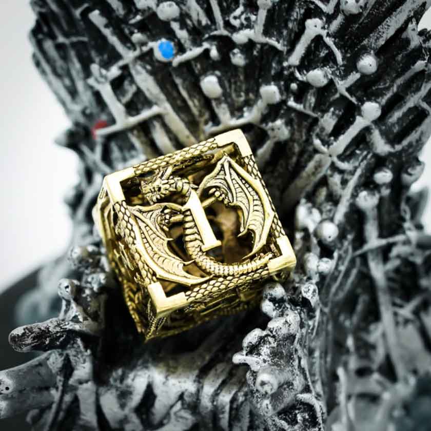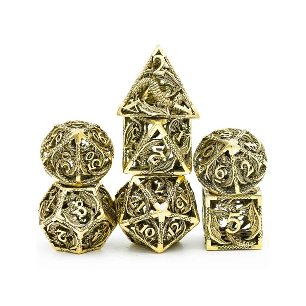 Gold Dragon 7 Piece Hollow Metal Polyhedral Dice Set & Dice Case