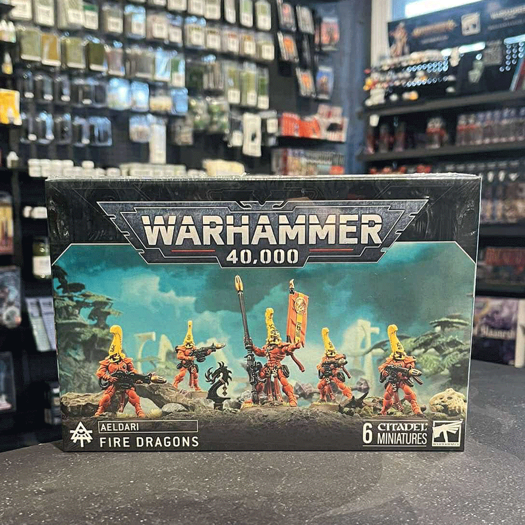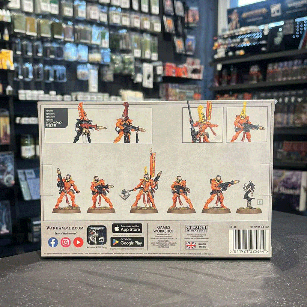 This multipart plastic kit builds five Fire Dragons – deadly flame-hurling warriors for use in Aeldari armies in games of Warhammer 40,000. These elite destructive troops can turn even the most heavily armoured battle tank into molten remains.