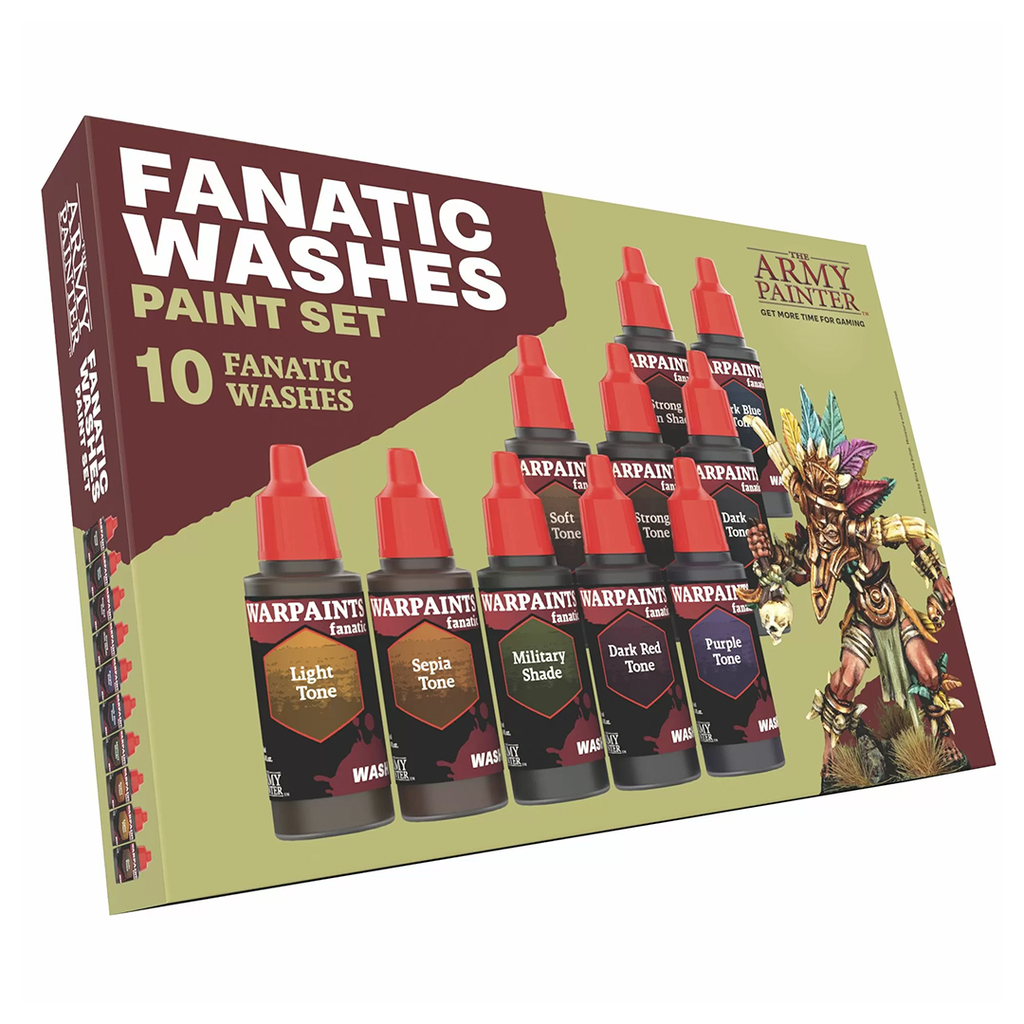 Adding shading to your miniature has never been easier! Our Fanatic Washes feature the same, industry-leading formulation as the original Quickshade Washes – just with an updated look and a few tweaks for improved performance. If the colours and names look familiar to you, they should – the set includes Army Painters classic Washes and all-new, exciting shades!