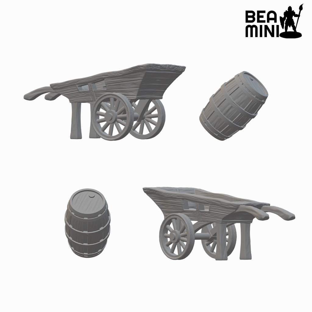Hand Carts & Barrels | BeaMini Unpainted RPG Miniatures