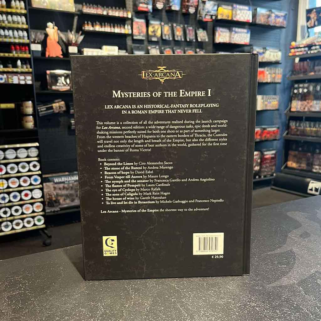 Mysteries of the Empire I is a collection of short adventures for Lex Arcana - An Empire without End. This adventure book offers a wide range of dangerous challenges, epic deeds and world-shaking missions, suitable to be played as individual playing sessions, or included as episodes in a larger campaign. From the western beaches of Hispania to the eastern borders of Thracia, the Custodes will travel the length and breadth of the Empire.