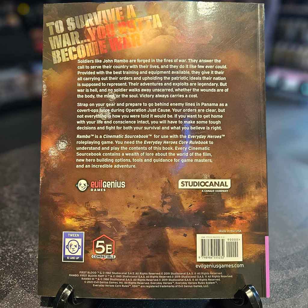 Rambo is a TTRPG Cinematic Adventure that’s 5e compatible, officially licensed, set in the world of the film and designed for use with the Everyday Heroes roleplaying game. You need the Everyday Heroes Core Rulebook to understand and play the contents of this book.