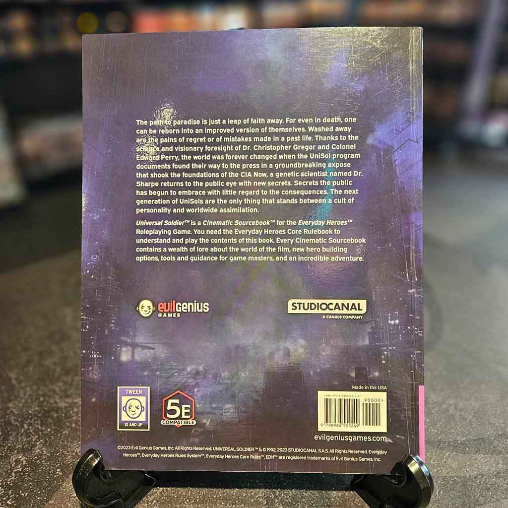 Universal Soldier is a TTRPG Cinematic Adventure that’s 5e compatible, officially licensed, set in the world of the film and designed for use with the Everyday Heroes™ roleplaying game. You need the Everyday Heroes Core Rulebook to understand and play the contents of this book.