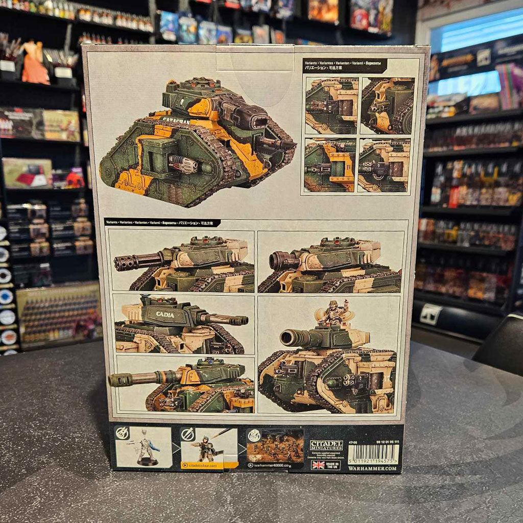 Customisable Loadout: Equip your Leman Russ with a hull-mounted secondary weapon – choose from a lascannon, heavy bolter, or heavy flamer. Further enhance its firepower with two optional sponson-mounted guns, selecting from a pair of heavy bolters, heavy flamers, multi-meltas, or plasma cannons.