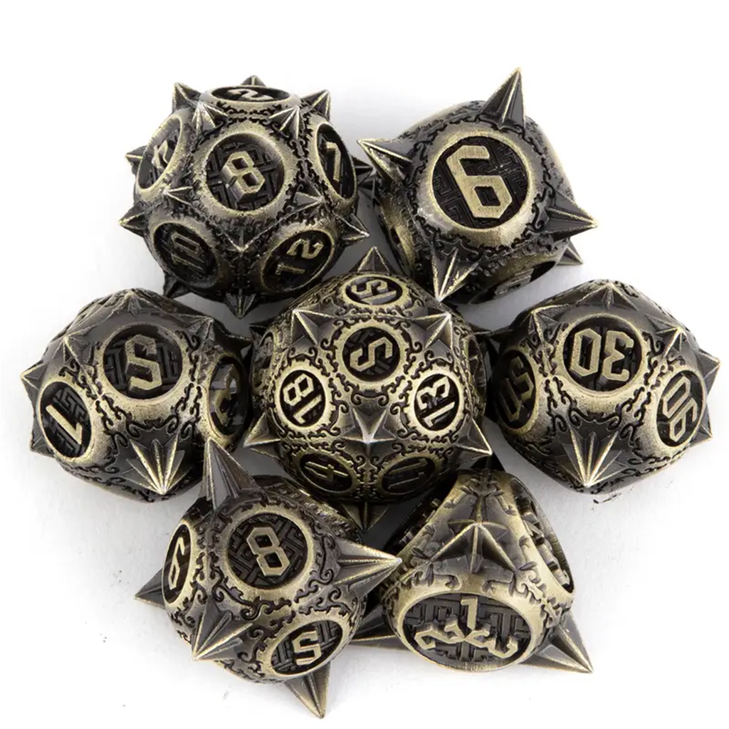 Elven Room Clearer - 7 Piece Metal Polyhedral Dice Set & Dice Case