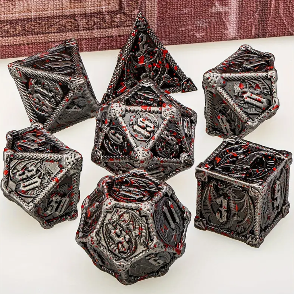 Splatter Drake - 7 Piece Metal Polyhedral Dice Set & Dice Case